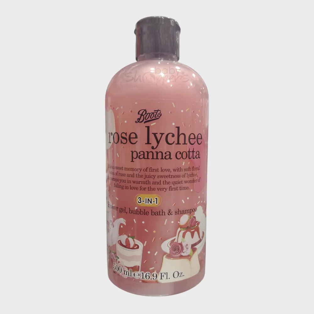 Boots Rose Lychee Panna Cotta Shower Gel, Bubble Bath & Shampoo 500ml