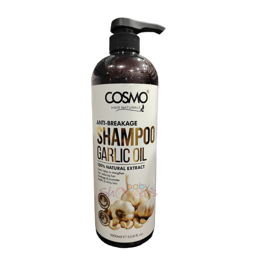 Combat hair fall and strengthen your hair with Cosmo Anti Breakage Garlic Oil Shampoo 1000ml, available at BabyShoppers. Infused with Garlic Oil, known for its high sulfur content, this shampoo nourishes hair follicles, reduces thinning, and promotes healthy new growth.