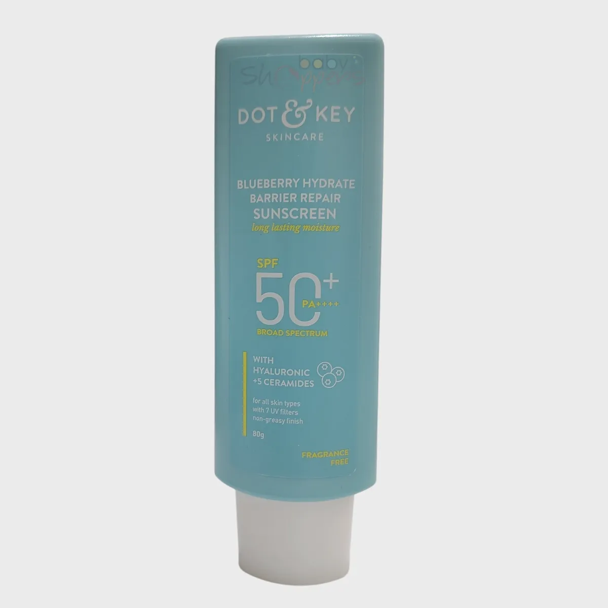 - The Dot & Key Blueberry Hydrate Barrier Repair Sunscreen SPF50+ PA++++ features six advanced UV filters that provide superior protection from both UVA and UVB rays.